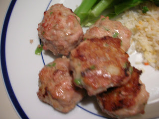 I've been working this week on a couple of recipes to submit to Better Homes and Gardens monthly contest. The category? "Not your Momma's Meatballs." Last night, I endeavored to create a meatball with Chinese take-out flavors...and was very happy with the results. This recipe will serve a post-workout, hungry twosome. You'll want to double it for four.