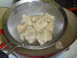 5. Lower dumplings into boiling water in batches. Boil approximately 3 minutes. Remove with strainer and serve immediately