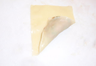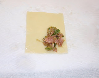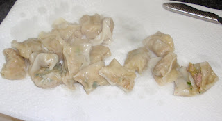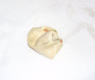 4. With the aid of cold water (to seal edges) fill dumlings with pork mixture and fold like tortellinis according to pictures below.