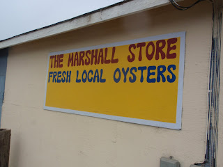 One of my favorite parts of a recent visit to San Fran/Napa was driving the long and scenic way up the coast on Highway 1. Just before the turn off inland towards Petaluma is Tomales Bay where tons of oysters are aqua-farmed and harvested. If you want to grill/shuck your own along with a picnic, stop at The Tomales Bay Oyster Company or Hog Island Oyster Company for a large bag. If, like us, you travel a little lighter (without an industrial sized cooler, let's say) drive further towards the small town of Marshall and The Marshall Store which has its own shellfish-centric no frills restaurant.